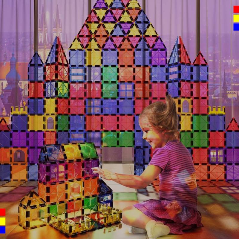 لعبة بناء بلوكات كبيرة الحجم مغناطيسية متعددة الالوان , تعليمية للأطفال تساعدهم على تنمية حس الابداع والتمييز .